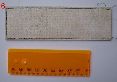 7 Вставляем в наш бумажный чехол линейку и отступив пару-тройку миллиметров, застрачиваем её.