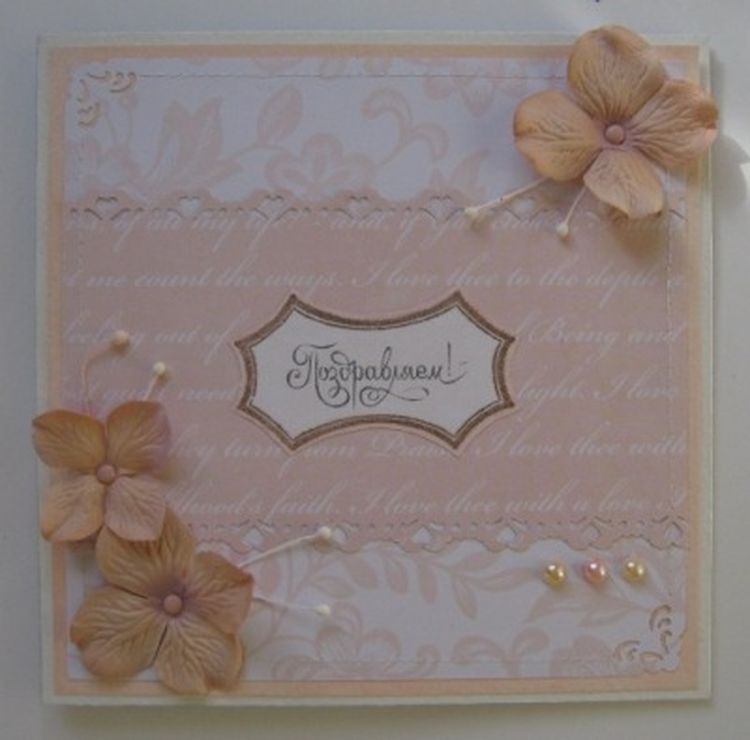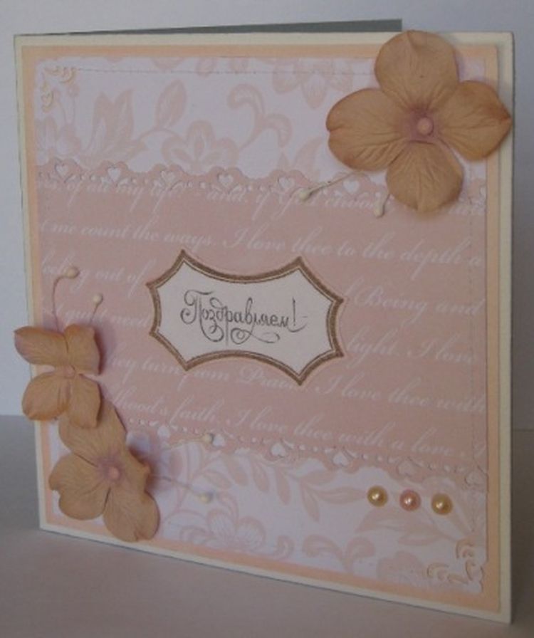 Первая открытка сделанная из свадебного набора K&Company 24листа. Бумага великолепная, на 100% оправдала ожидания. Теперь стараюсь, чтобы мои работы ей соответствовали :)