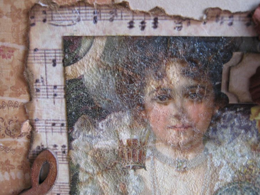 Картинка и ноты покрыты кракелюром. Жаль только, что фото всё-таки искажает цвета. На самом деле цветок не смотрится таким ярким, а картинка больше матовая, чем глянцевая.