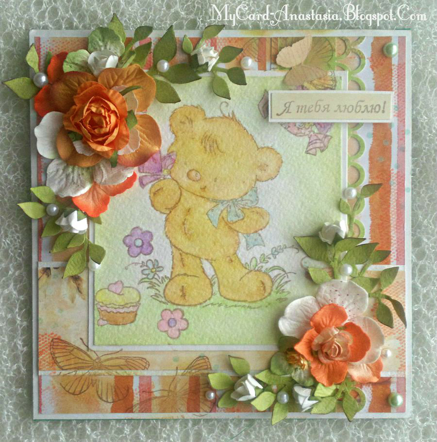 3. Нежная весенняя открыточка! Мишку раскрасила здорово - с полутонами, я так не умею:)